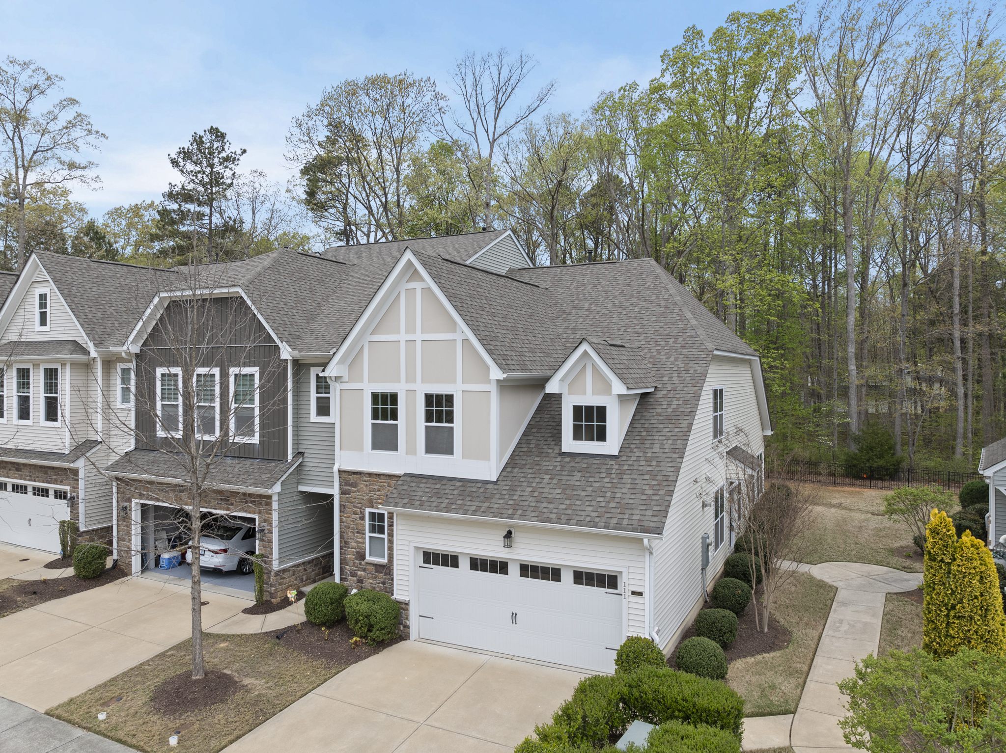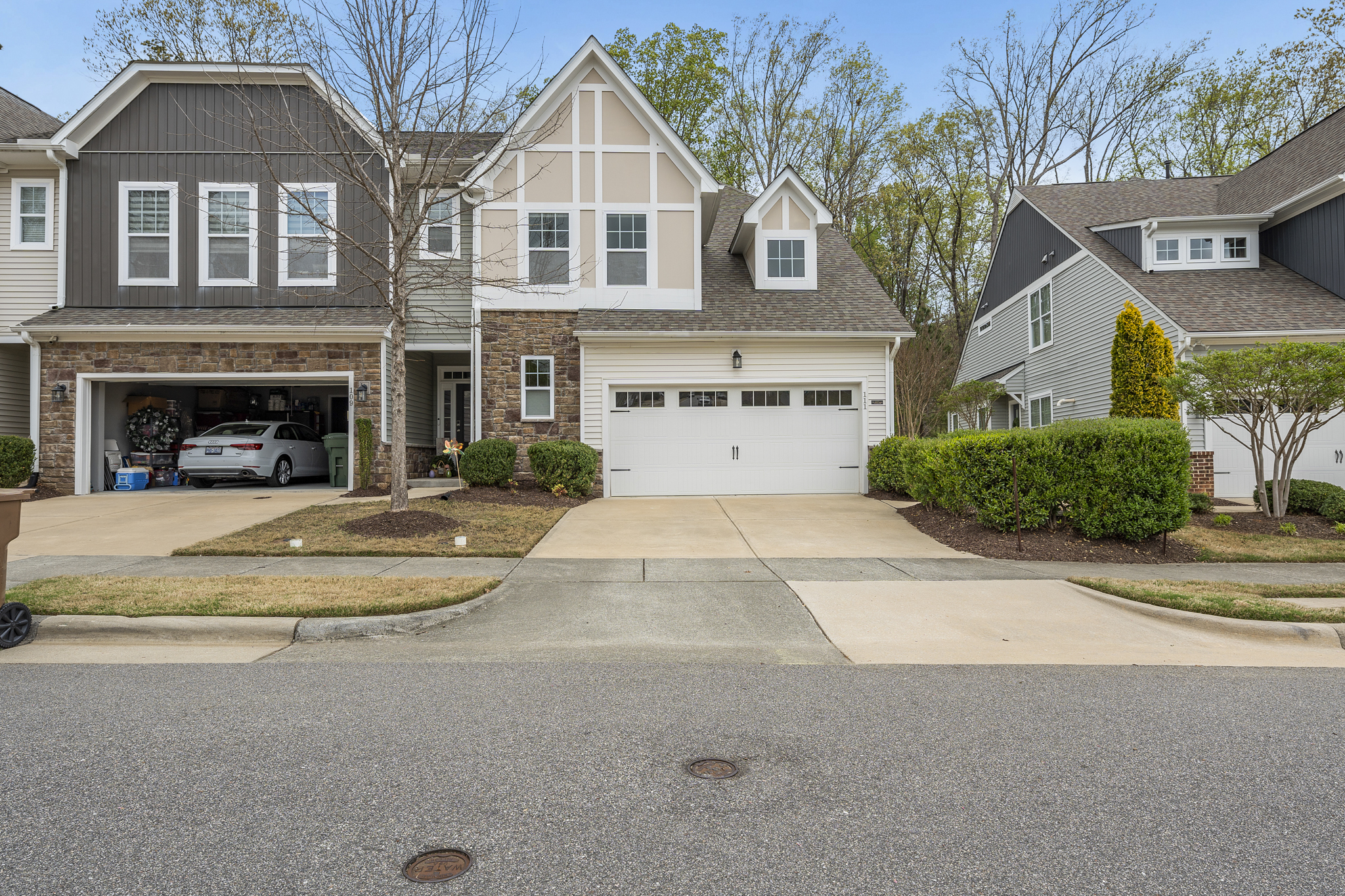 Incredible End-Unit Townhome with 2 Car Garage in a prime Cary location! Conveniently located near Highway 54, Harrison Avenue, and Park West Village, offering easy access to premier shopping, dining, and entertainment. This home has been beautifully upgraded, featuring a smart thermostat and lock, along with new cellular shades for added convenience. Step inside to an open floorplan designed for comfort and functionality. The gourmet kitchen is a chef's dream, boasting stainless steel appliances, a spacious island, and a brand-new Bosch dishwasher (installed 11/2023.) The adjacent dining area flows seamlessly into the spacious living room, which offers the perfect spot for relaxation with its cozy fireplace. The main level guest suite is a true retreat, featuring a walk-in closet and an ensuite bath with a walk-in shower-- ideal for visitors or multi-generational living. Upstairs, the luxurious primary suite features a spa-like ensuite with soaking tub, walk in shower, and spacious walk in closet. A loft sitting area offers additional space for a home office, media room, or relaxation area. Two more generously sized bedrooms complete the second level, connected by a shared full bath. Enjoy outdoor living on the covered porch, which overlooks the private backyard - a great space for morning coffee or evening unwinding. With new upgrades throughout, this home is truly move-in ready and offers an unbeatable combination of style, comfort, and convenience. Don't miss this incredible opportunity!