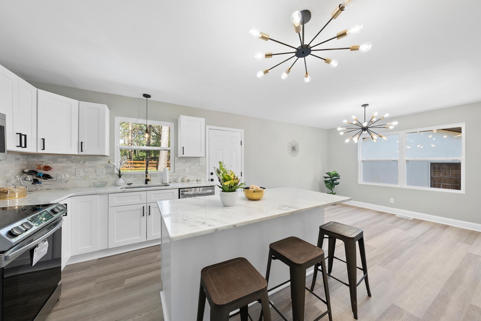 Gorgeous, Totally Renovated Home with new parking pad and front yard privacy fence in the Heart of North Raleigh! Convenient to Six Forks Rd, Millbrook Rd, and HWY 440! This home enjoys easy commuting all around the Triangle while being just minutes from shopping, dining, and entertainment! How Features New Roof, New HVAC, Fresh Paint, and New LVP and Carpet Flooring in Every Room! Entertain in stylish, modern Living Room with fireplace and built in storage! Updated Kitchen with Oversized Island features Granite Countertops, Tile Backsplash, and Stainless Steel Appliances! Kitchen Opens into Dining Area! Spacious Owner Suite features His and Hers closets and Updated En Suite! Additional Bedroom Options Share Full Bathroom with Spacious Glass Shower! Patio Overlooks Spacious, Fenced Backyard that offers plenty of Privacy! Backyard that offers plenty of Privacy!