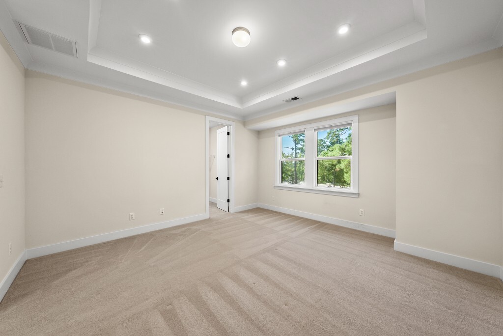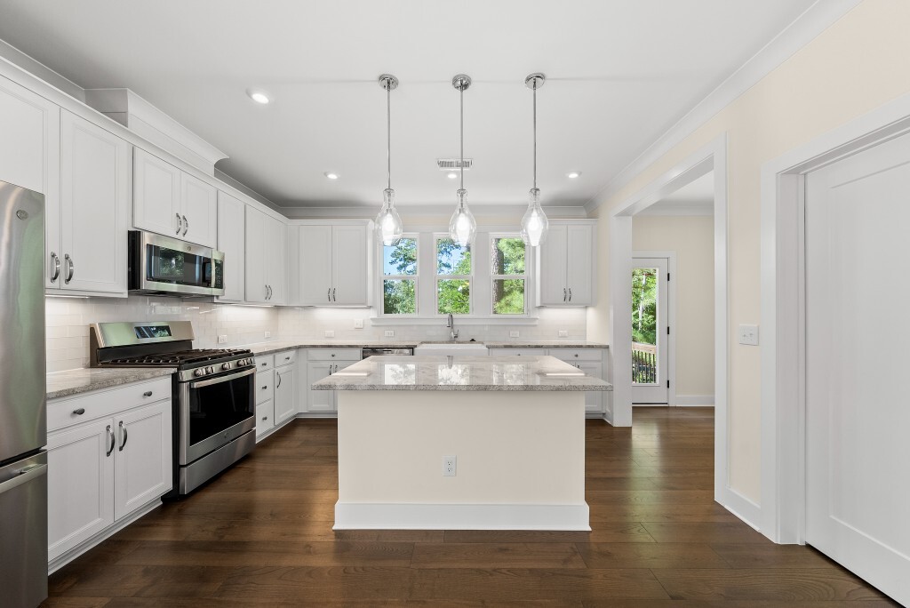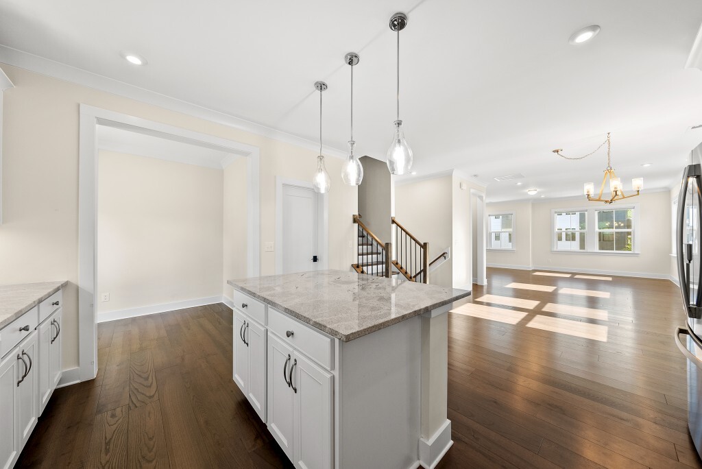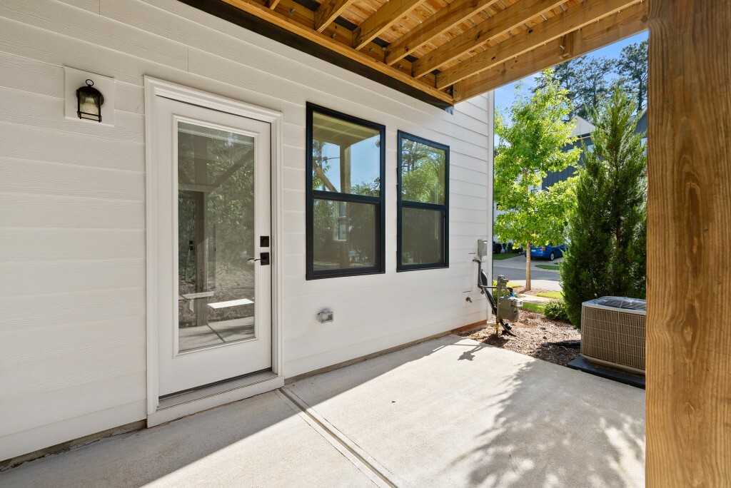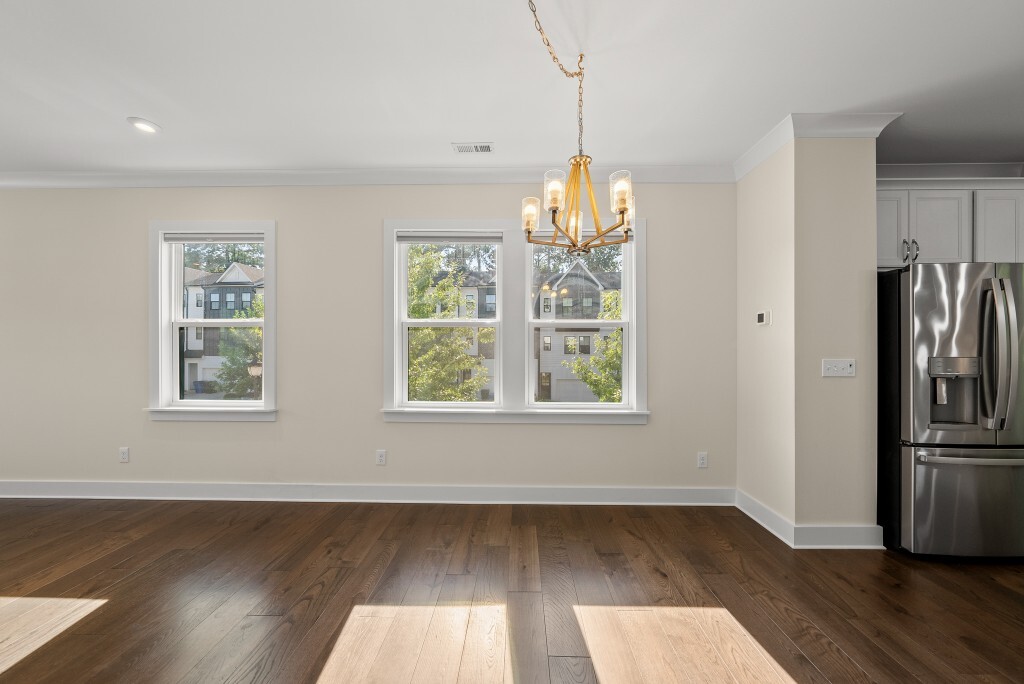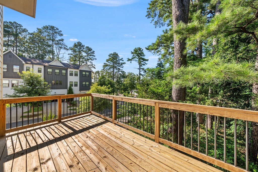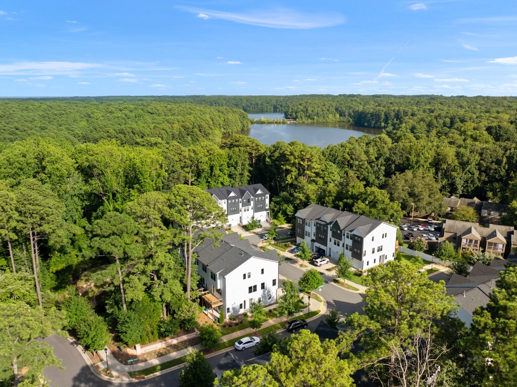 Experience modern comfort in this immaculate end unit townhome, boasting one of the neighborhood's largest floor plans and best price per square foot! Situated mere moments from Walnut Creek Trail and Lake Johnson, and with easy access to major thoroughfares including 440, I-40, US 1, and Hwy 64, convenience is at your doorstep. Enjoy proximity to shopping, dining, and entertainment, with Crossroads Shopping Plaza just a stone's throw away. Inside, this contemporary residence boasts the best price per square foot in the neighborhood. Featuring 3 bedrooms, each with its own ensuite bath, this home offers unparalleled convenience and privacy. The kitchen is equipped with stainless steel appliances, granite countertops and a spacious center island. As an added benefit, the refrigerator water line is plumbed for a Kinetico filtration system. Elegant crown molding, an open floor plan, and smart thermostats enhance the modern living experience. The first floor includes a 2 car garage, a large bedroom with an ensuite bath and access to a covered patio for relaxed outdoor living. Upstairs, the main living area delights with a well-appointed kitchen, breakfast area, spacious deck, a pantry,a powder room, and an open family room flooded with natural light through expansive windows. The third floor hosts two additional bedrooms, each with an ensuite bath, and a convenient laundry closet. This home won't last long!