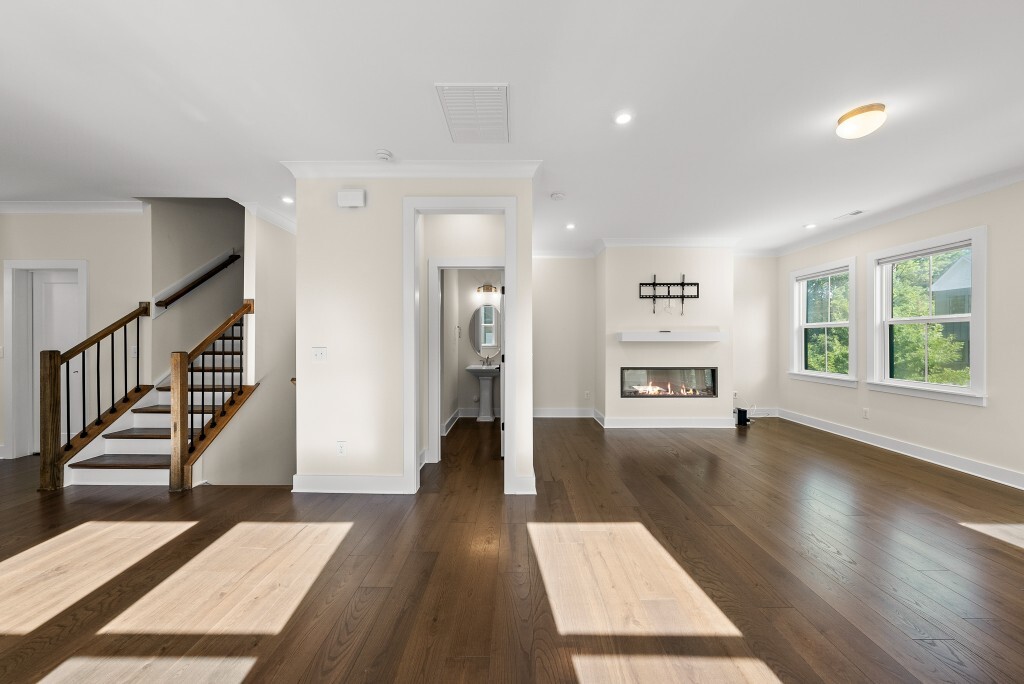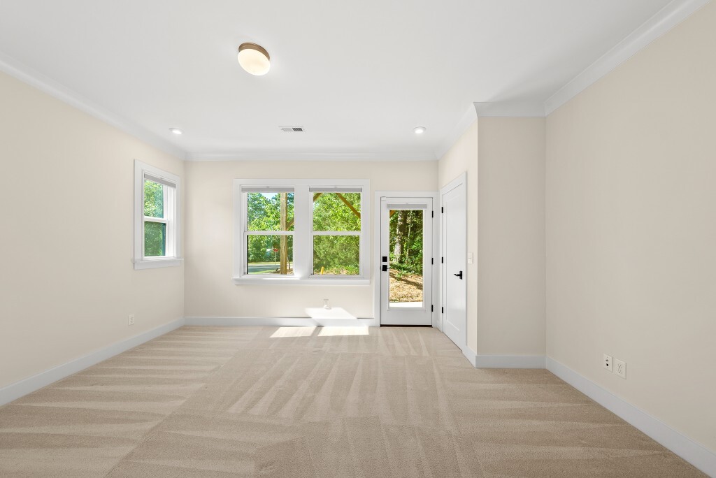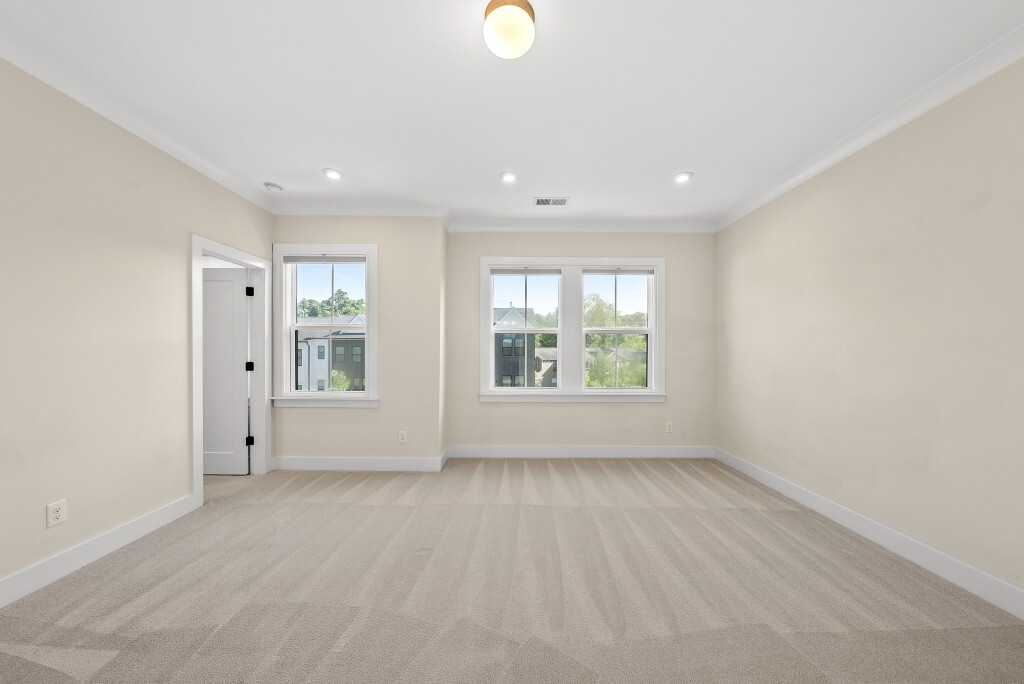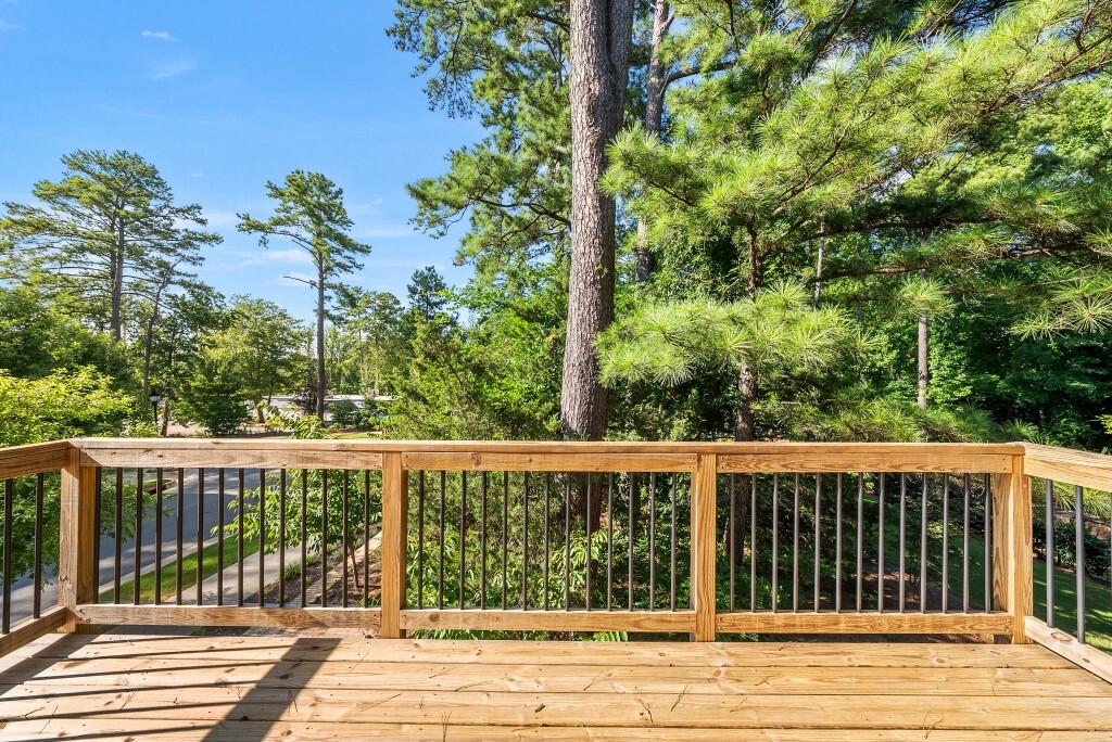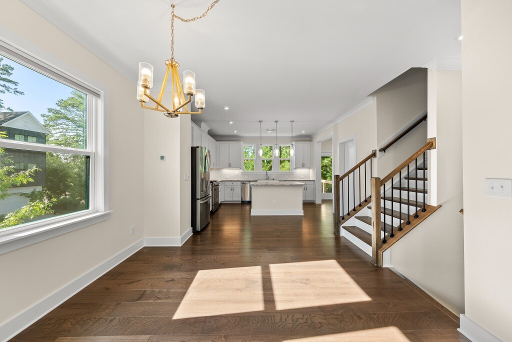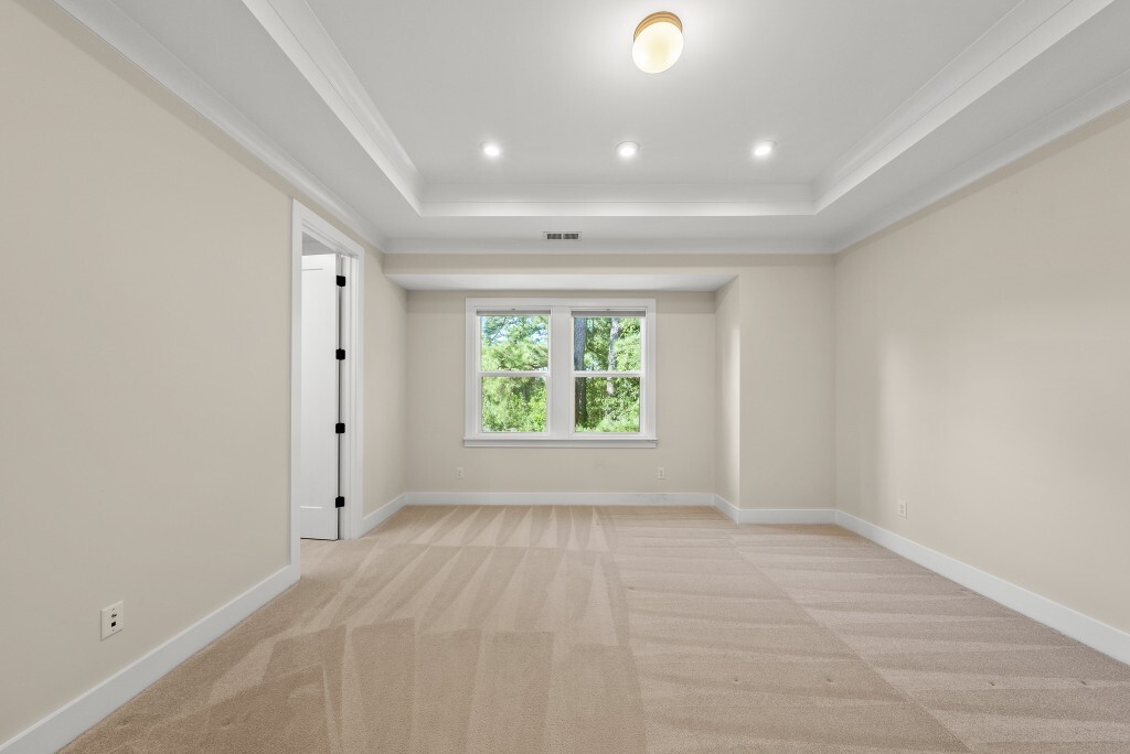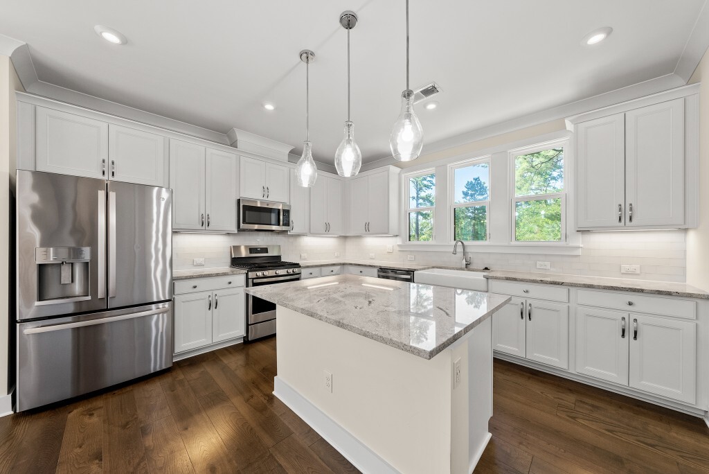 Experience modern comfort in this immaculate end unit townhome, boasting one of the neighborhood's largest floor plans and best price per square foot! Situated mere moments from Walnut Creek Trail and Lake Johnson, and with easy access to major thoroughfares including 440, I-40, US 1, and Hwy 64, convenience is at your doorstep. Enjoy proximity to shopping, dining, and entertainment, with Crossroads Shopping Plaza just a stone's throw away. Inside, this contemporary residence boasts the best price per square foot in the neighborhood. Featuring 3 bedrooms, each with its own ensuite bath, this home offers unparalleled convenience and privacy. The kitchen is equipped with stainless steel appliances, granite countertops and a spacious center island. As an added benefit, the refrigerator water line is plumbed for a Kinetico filtration system. Elegant crown molding, an open floor plan, and smart thermostats enhance the modern living experience. The first floor includes a 2 car garage, a large bedroom with an ensuite bath and access to a covered patio for relaxed outdoor living. Upstairs, the main living area delights with a well-appointed kitchen, breakfast area, spacious deck, a pantry,a powder room, and an open family room flooded with natural light through expansive windows. The third floor hosts two additional bedrooms, each with an ensuite bath, and a convenient laundry closet. This home won't last long!