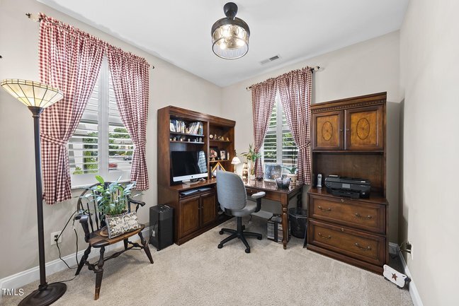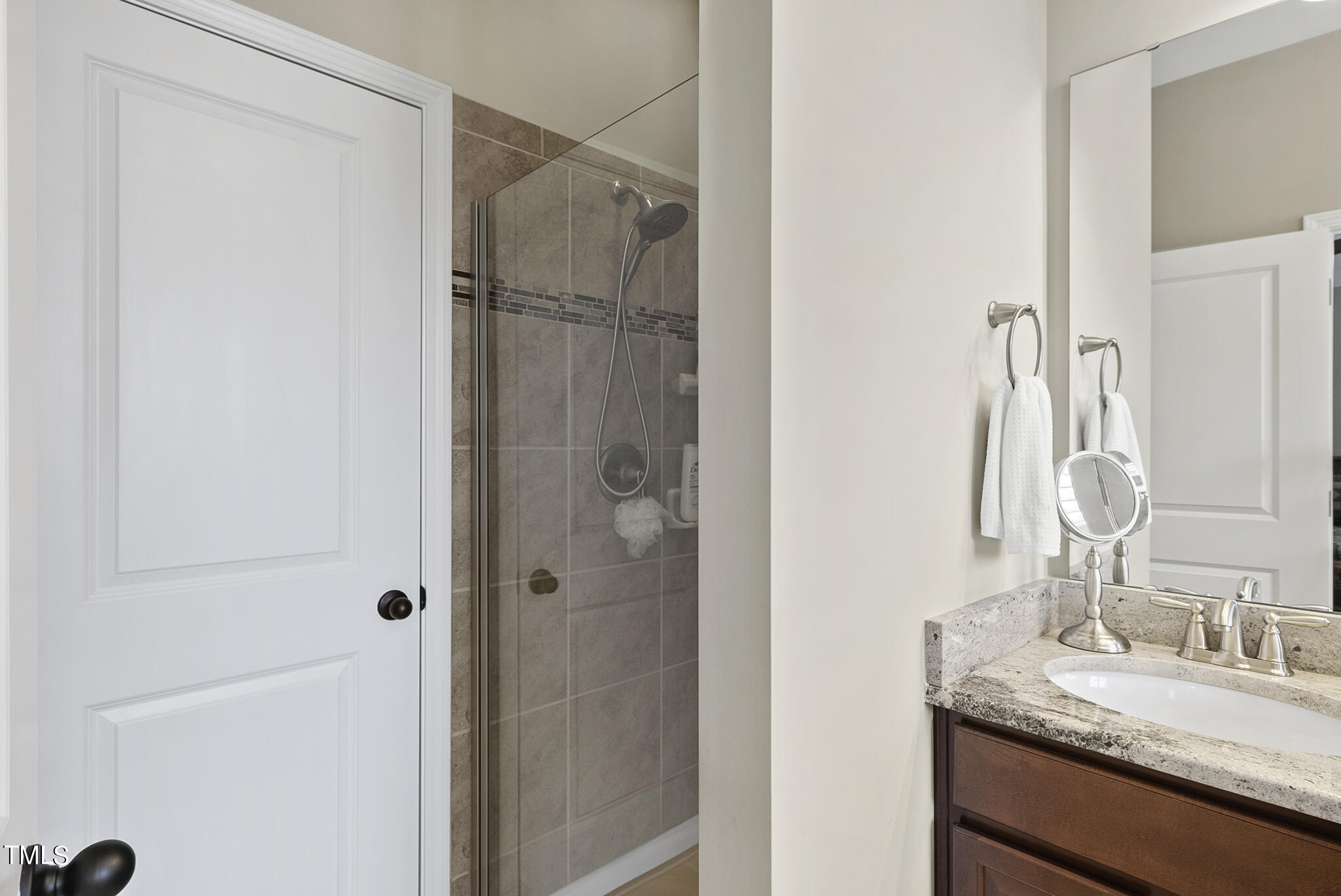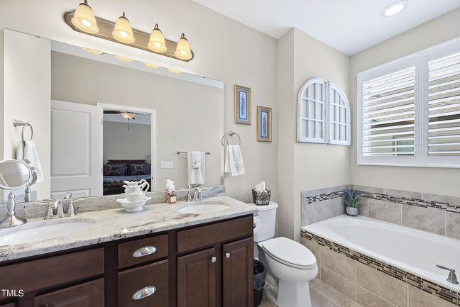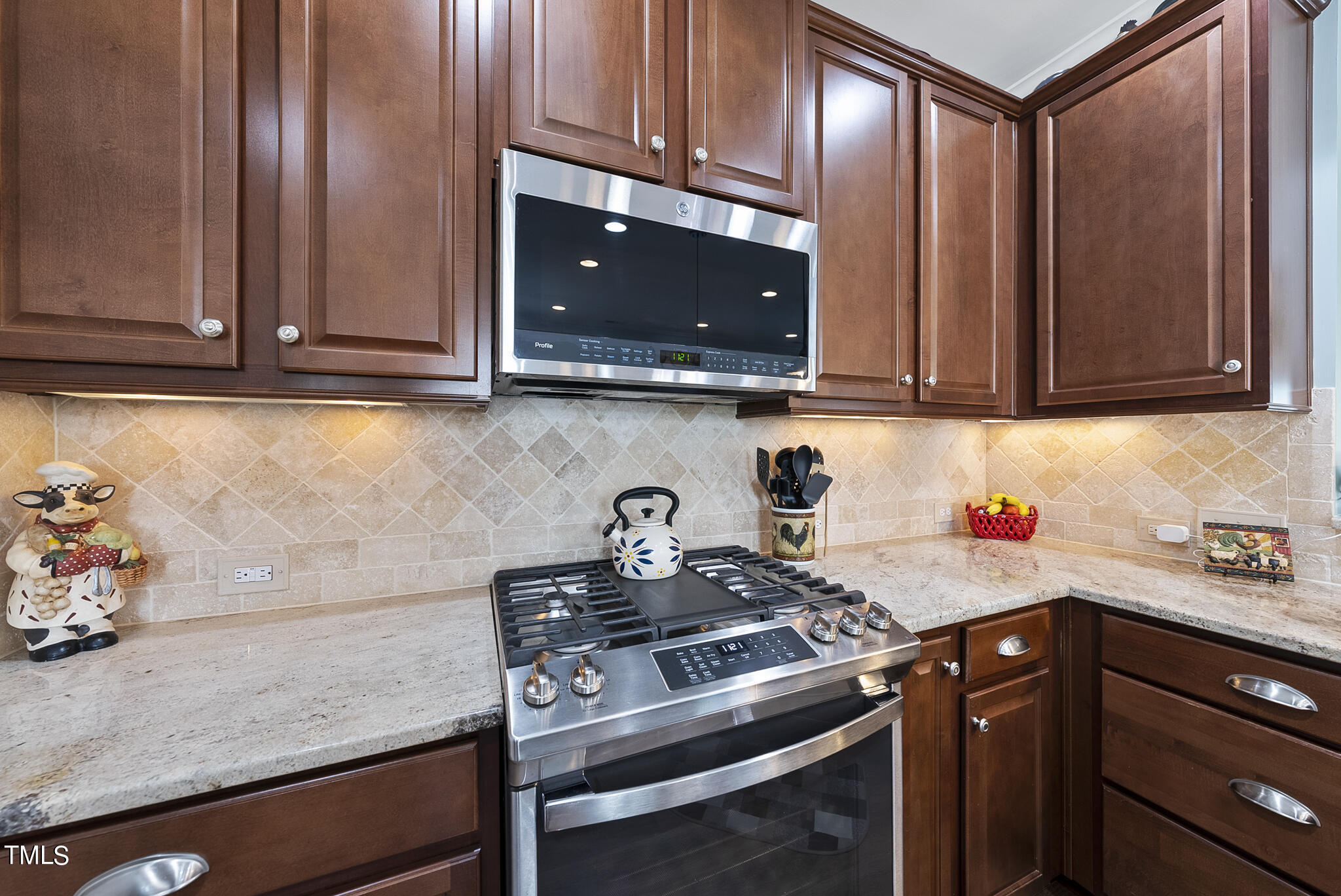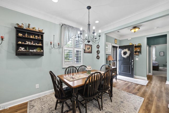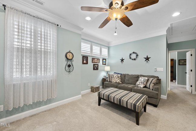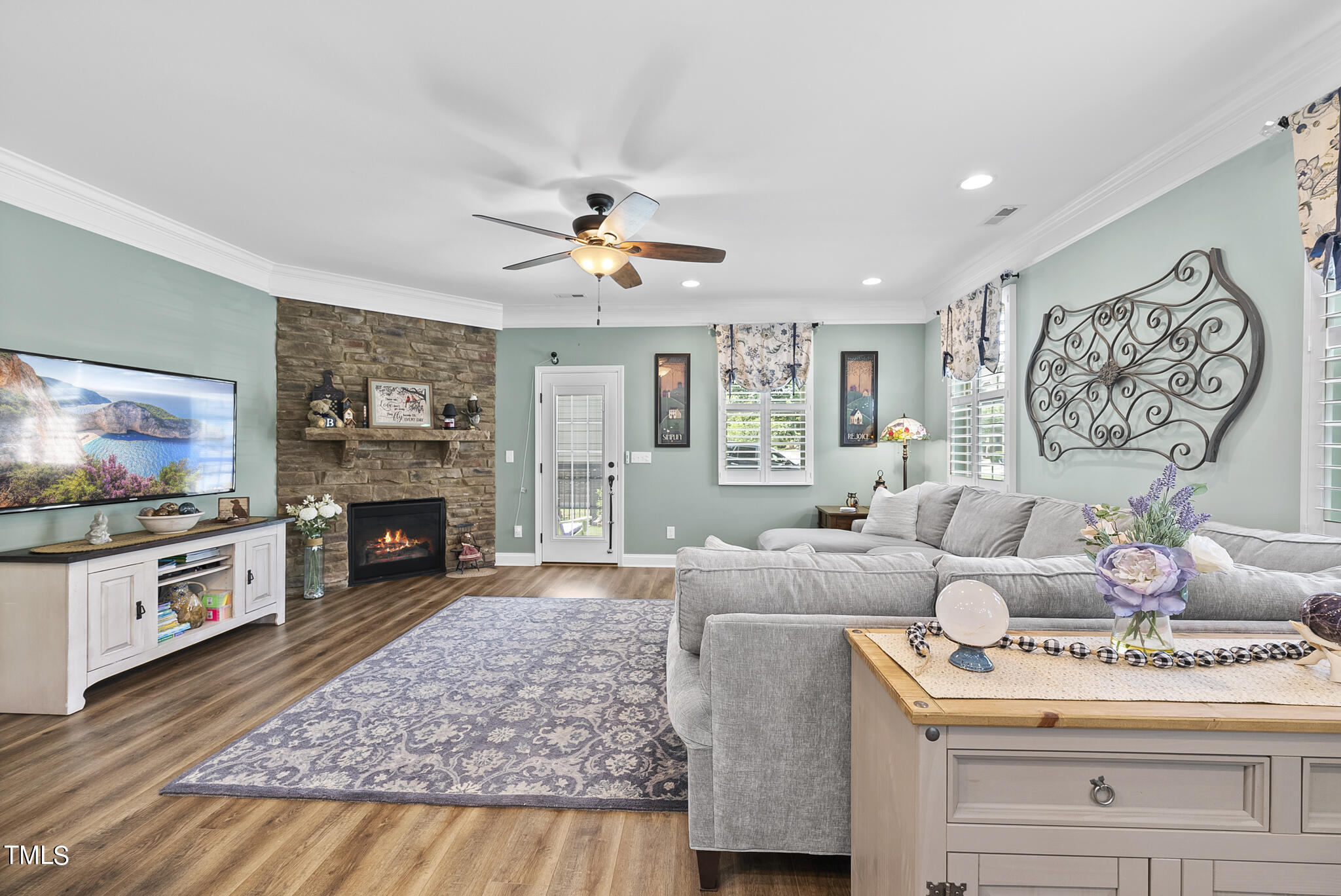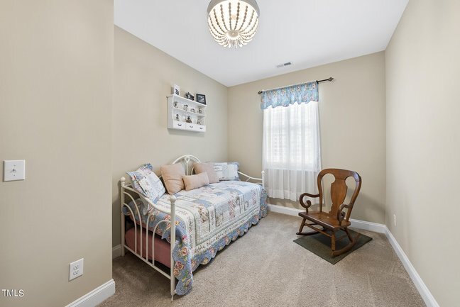 Stunning End Unit Townhome! This Apex Home is an easy commute to Holly Springs, Cary, and Raleigh! Beautiful plantation shutters surround home! Spacious family room with cozy, stone surround fireplace overlooks the eat-in kitchen, creating a desirable open floor plan! Kitchen features stainless steel appliances, granite countertops, tile backsplash and pantry! The first floor bedroom option is just steps from full bathroom with granite countertop vanity and glass sink, perfect for guests! Spacious owner suite with walk-in closet features a large bathroom with dual vanities, soaking, tub, and glass shower! Second floor features two additional bedroom options as well as shared full bathroom! Sizable loft is an ideal second family room! Corner lot offers extra natural space! Covered concrete patio with privacy screens overlooks fully fenced backyard and is a perfect place to enjoy the sunshine this summer!
