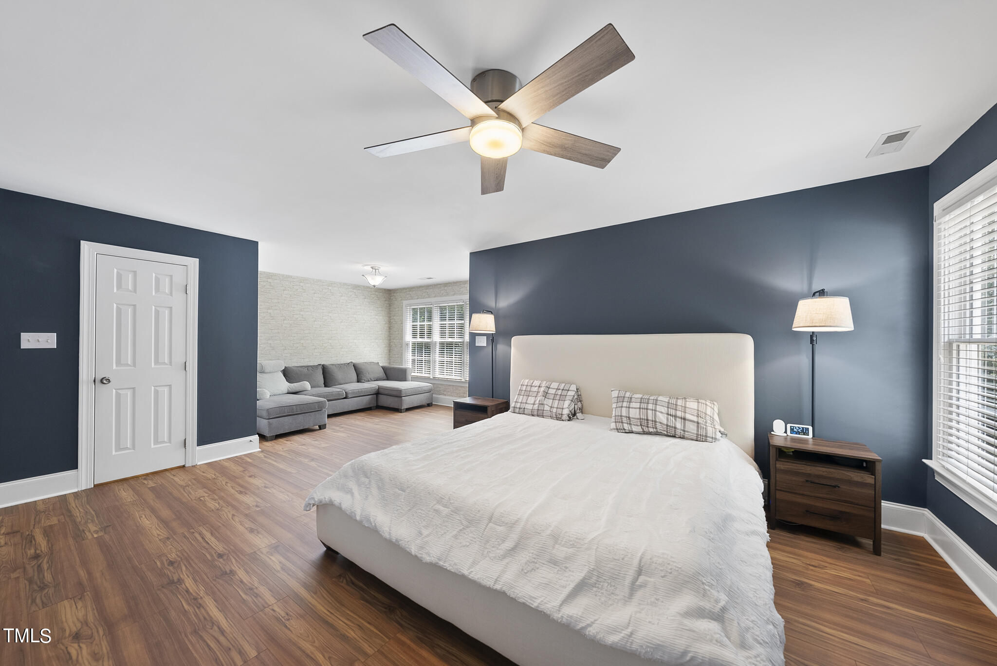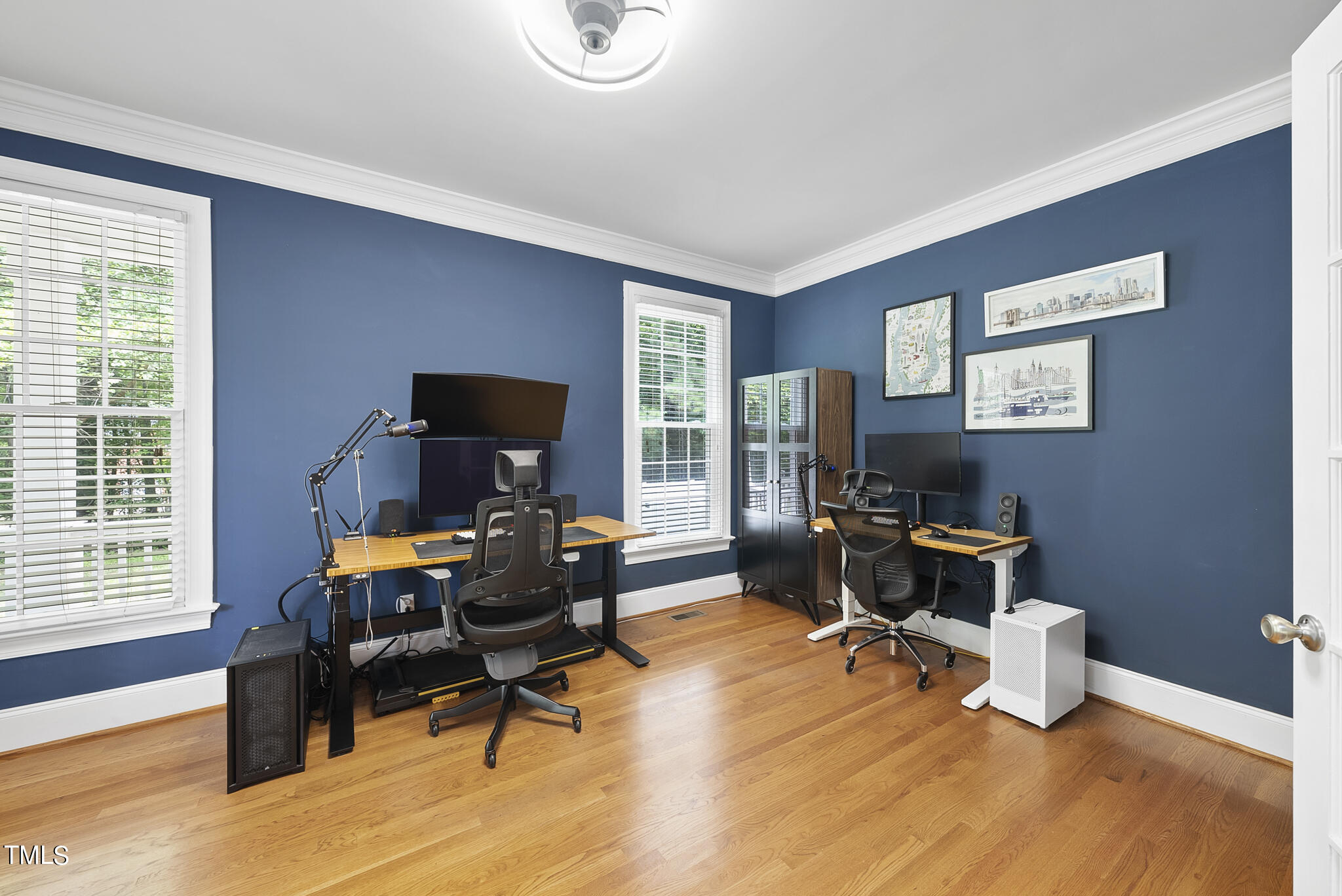 Charming 4-Bedroom Home with side entry 3 car garage on 2+ Acres in Waterfall Plantation! Welcome to this gorgeous and impeccably maintained home situated on over 2 acres in the highly desirable Waterfall Plantation community. This beautiful residence, which features 4 bedrooms and 3.5 baths, also boasts a new roof added in 2020. The first floor boasts a large, light-filled office, elegant hardwood flooring, and crown molding. The dining room offers classic wainscoting and plenty of natural light. The two-story family room impresses with a grand bank of floor-to-ceiling windows, a cozy gas fireplace, built-ins, and a view of the catwalk above. It opens to the chef's kitchen that features granite countertops, a wet bar, a bar counter with seating, stainless steel appliances, and a bright breakfast nook that leads to a partially covered deck. Additional highlights include a large laundry room with ample storage and counter space, a tankless water heater, and a convenient powder room. Upstairs, the luxurious primary suite offers a spacious bedroom with a separate sitting area and access to a private covered deck, along with a beautiful en-suite bath with separate vanities, a stand alone soaking tub, a tiled and glass walk-in shower, and a large walk-in closet. Bedroom 2 includes a private en-suite bath, while Bedrooms 3 and 4 share a Jack-and-Jill bath, with Bedroom 4 which can also serve as a versatile bonus room. Outside you will find a 3 car side load garage with plenty of driveway parking. Enjoy a spacious deck, a large fenced backyard with mature trees, and plenty of space for relaxation and privacy. This home is a must see!