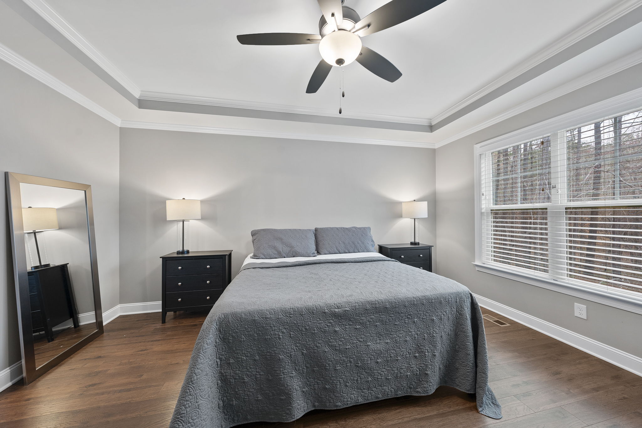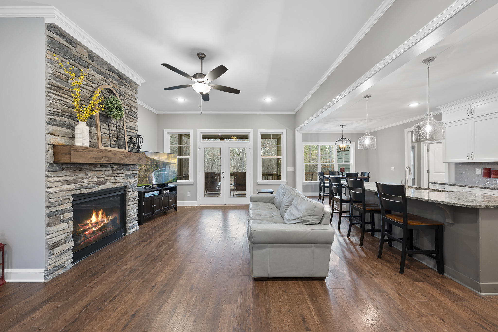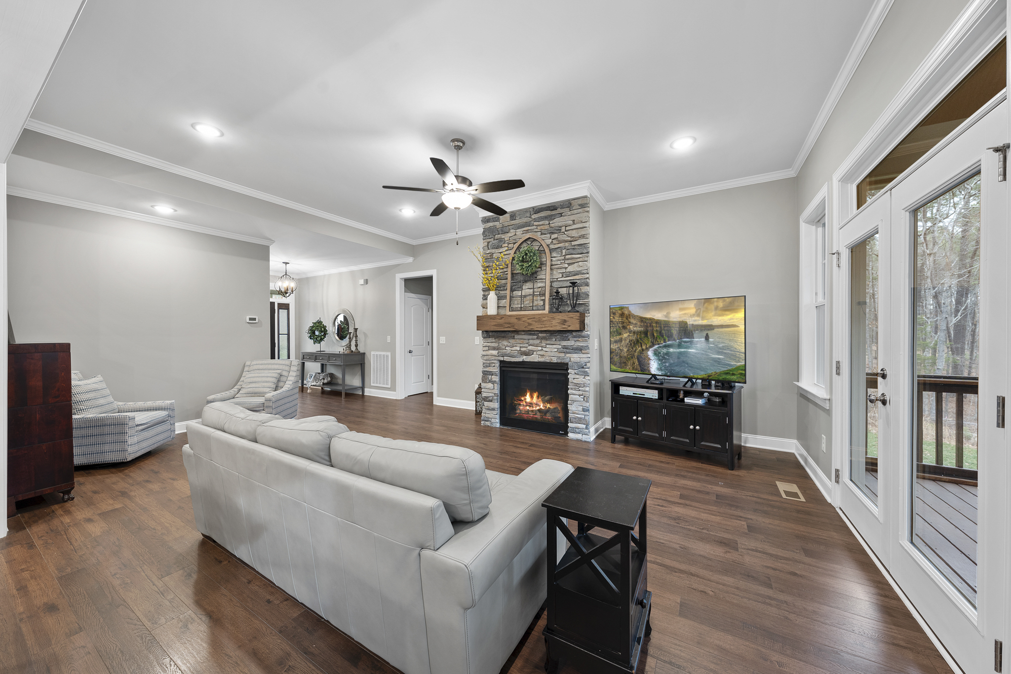 Stunning Home with First Floor Owners Suite on Over an Acre in the Heart of Youngsville! Great Location near shopping and dining with easy access to Highway 96 & US-1! This charming home welcomes you with a classic rocking chair front porch and an inviting open floorplan. The spacious living room, featuring a beautiful stone fireplace, seamlessly flows into the gourmet kitchen - complete with pendant lighting, stainless steel appliances, a pantry, and a cozy breakfast nook. The first floor owner's suite is a true retreat, boasting a tray ceiling, a spa-like ensuite with a dual vanity, a walk-in tiled shower, a soaking tub, a water closet, and generous walk-in closet. Two additional bedrooms and a dedicated home office provide plenty of space for work and relaxation- all conveniently located on the main floor! Upstairs, you'll find a large bonus room, an additional bedroom, and a full bathroom- ideal for guests or a private getaway. Step outside to the screened in porch and deck, where you can unwind while overlooking the peaceful, wooded backyard. Need extra storage? The expansive walk-in attic has you covered! Don't miss your chance to own this beautiful home!