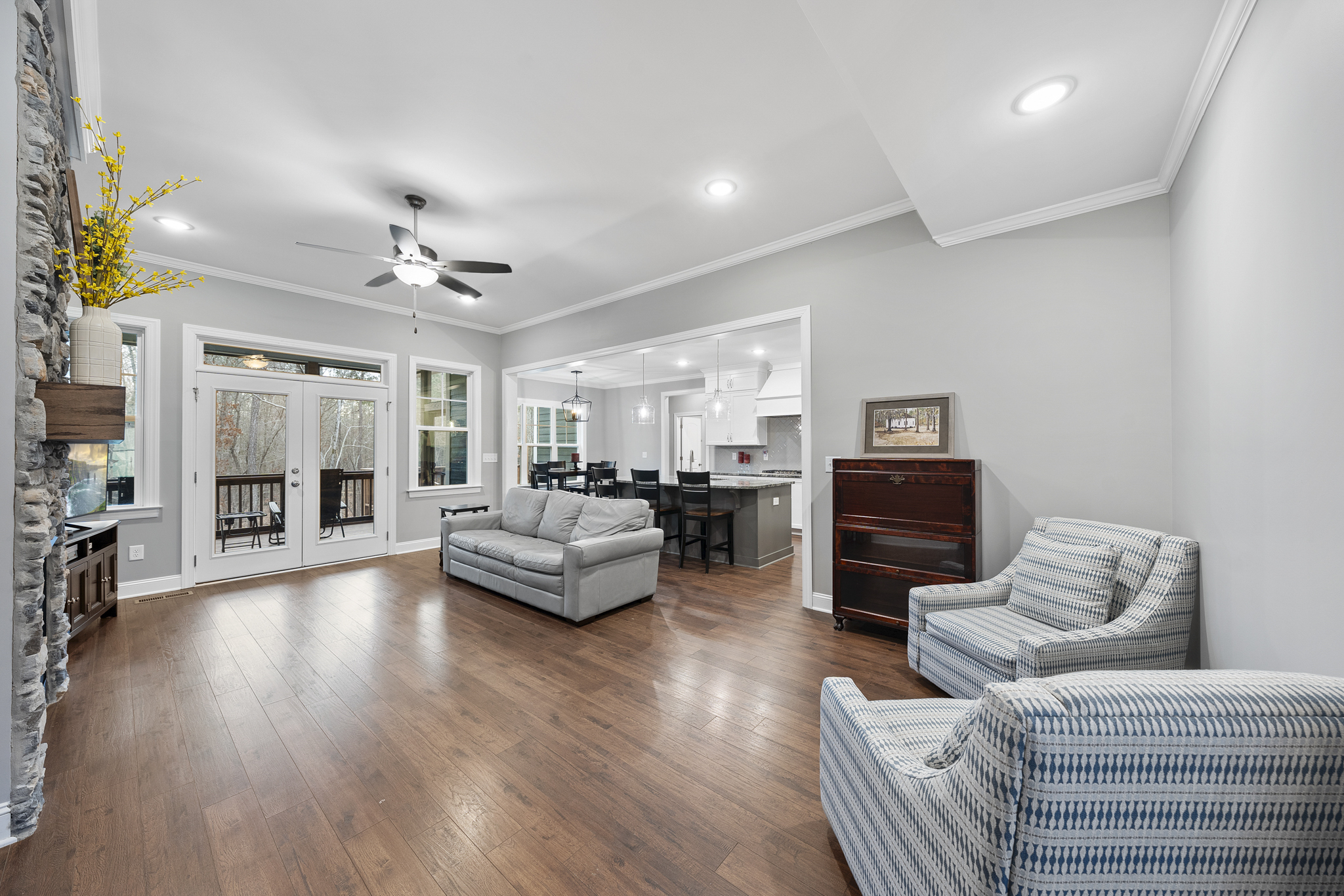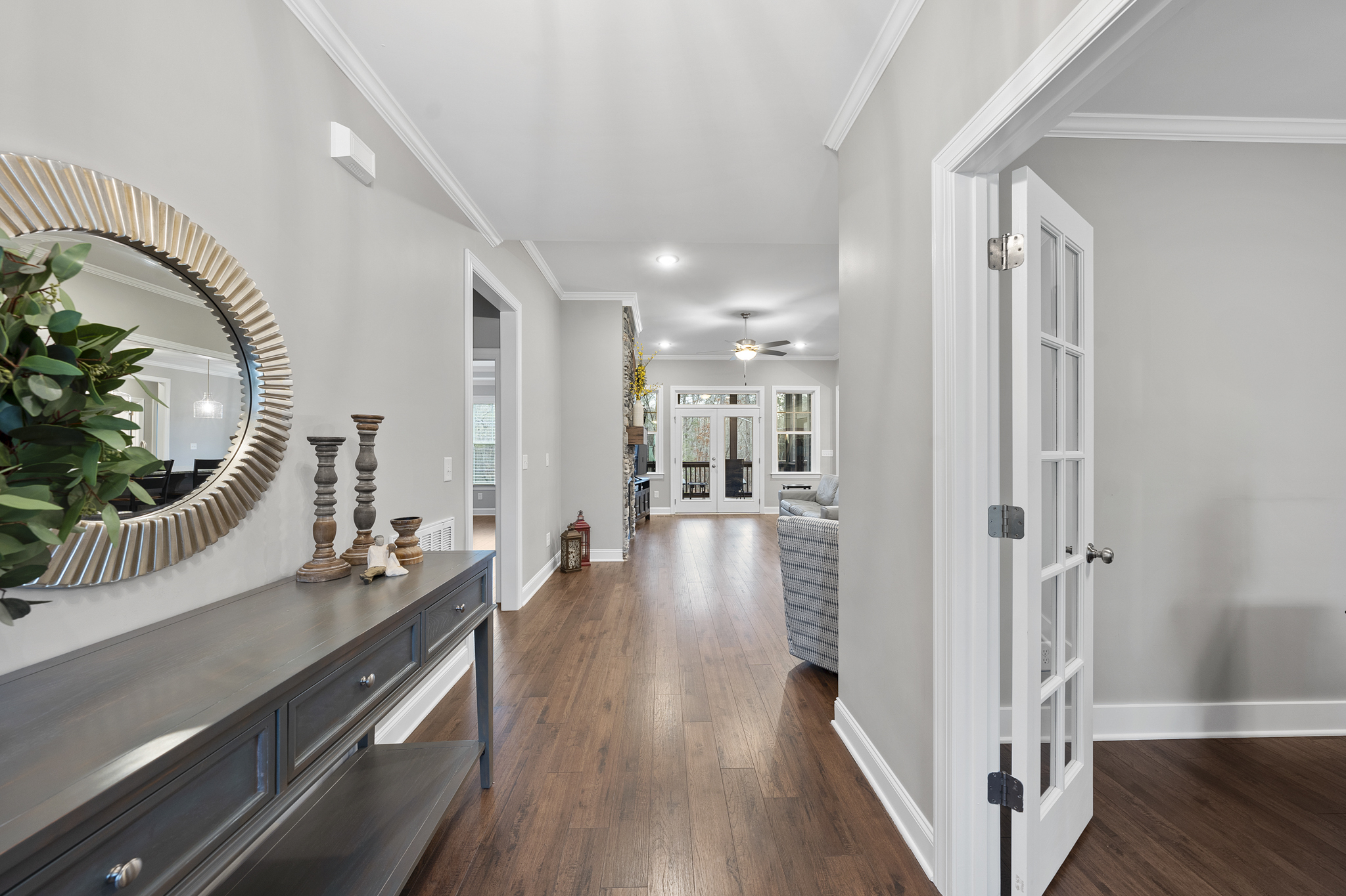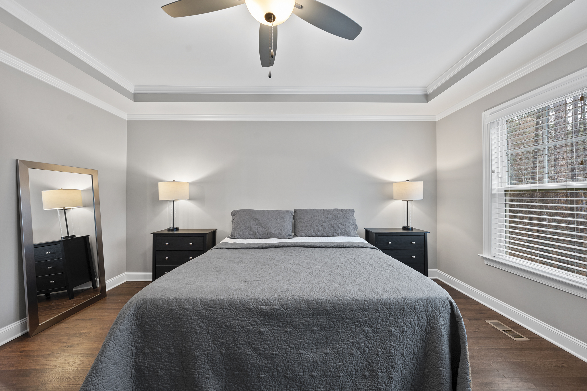Stunning Home with First Floor Owners Suite on Over an Acre in the Heart of Youngsville! Great Location near shopping and dining with easy access to Highway 96 & US-1! This charming home welcomes you with a classic rocking chair front porch and an inviting open floorplan. The spacious living room, featuring a beautiful stone fireplace, seamlessly flows into the gourmet kitchen - complete with pendant lighting, stainless steel appliances, a pantry, and a cozy breakfast nook. The first floor owner's suite is a true retreat, boasting a tray ceiling, a spa-like ensuite with a dual vanity, a walk-in tiled shower, a soaking tub, a water closet, and generous walk-in closet. Two additional bedrooms and a dedicated home office provide plenty of space for work and relaxation- all conveniently located on the main floor! Upstairs, you'll find a large bonus room, an additional bedroom, and a full bathroom- ideal for guests or a private getaway. Step outside to the screened in porch and deck, where you can unwind while overlooking the peaceful, wooded backyard. Need extra storage? The expansive walk-in attic has you covered! Don't miss your chance to own this beautiful home!