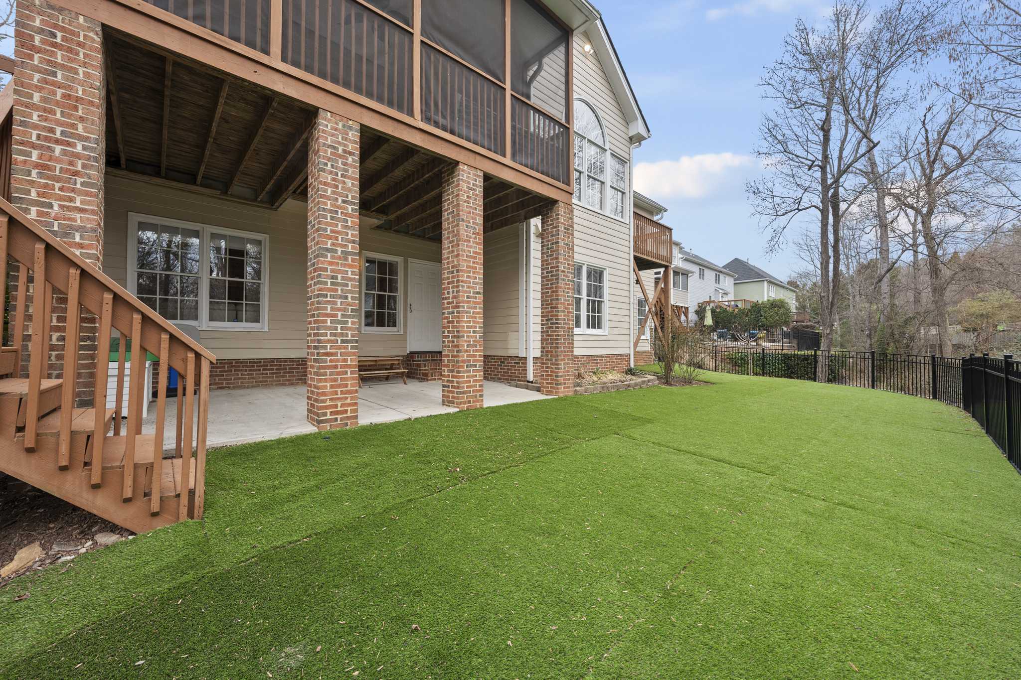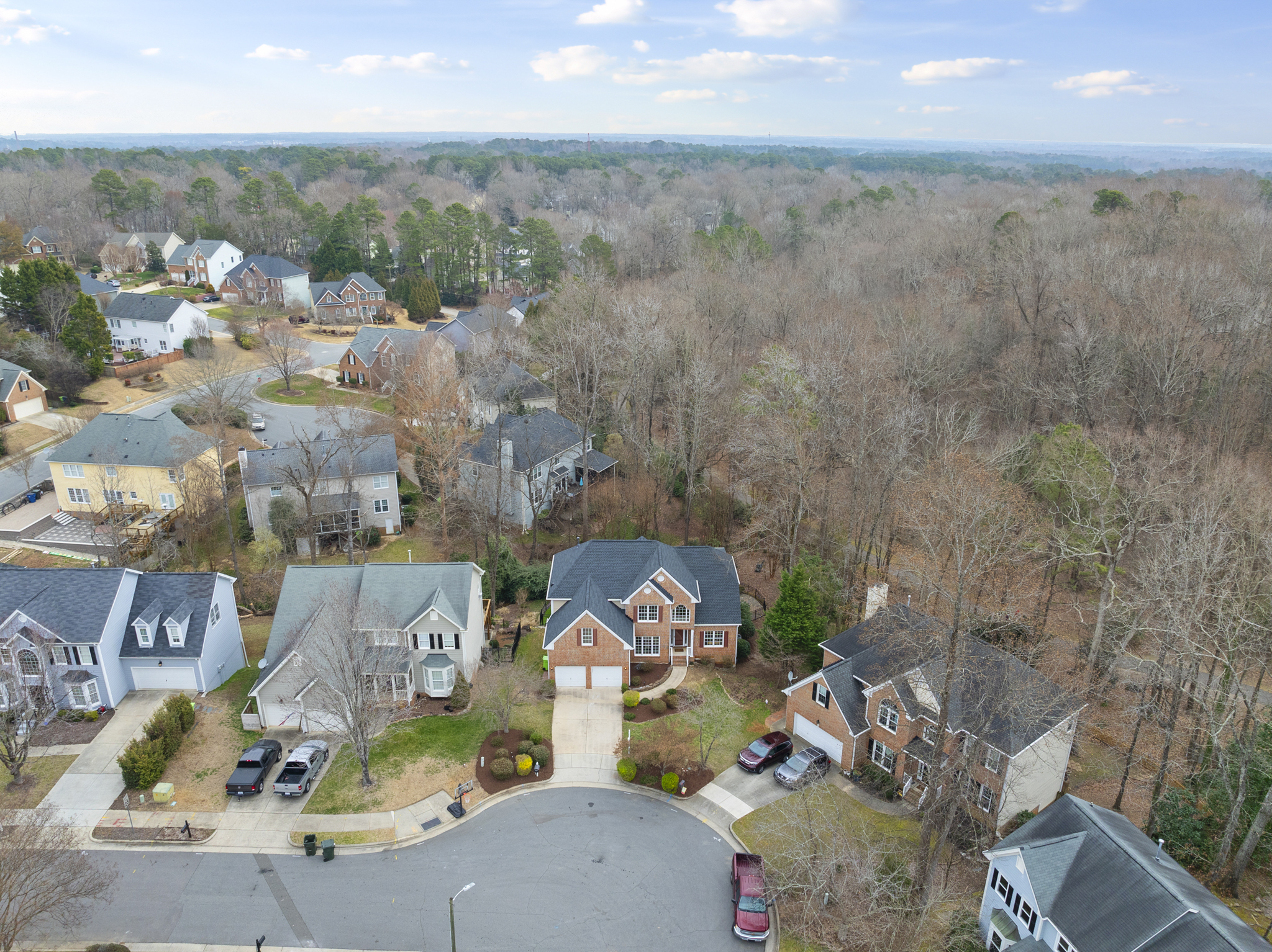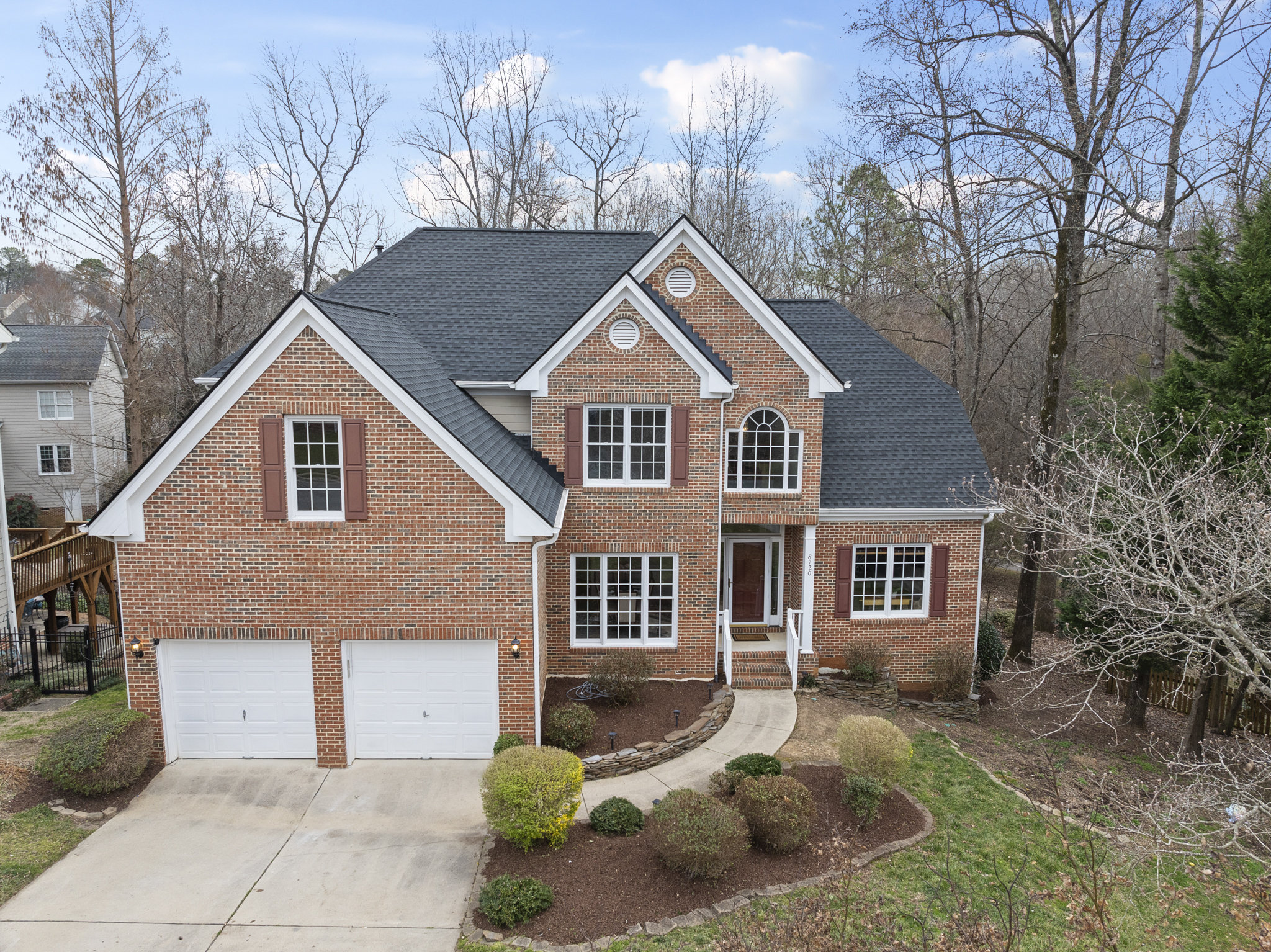 Discover this stunning Executive Brick Front Home with a First Floor Owner's Suite, perfectly situated on a quiet cul-de-sac in the heart of North Raleigh! Conveniently located near I-540, US-1, Durant Nature Park, Triangle Town Center, and minutes to Durant Elementary, Durant Middle, and Abbotts Creek! Step inside to find fresh paint throughout and an inviting open floorplan. The spacious family room with a cozy fireplace seamlessly connects to the gourmet kitchen, featuring new granite counters, freshly painted cabinets, stainless steel appliances, a pantry, and a charming breakfast nook. Work from home in the first floor study, and host gatherings in the formal dining room. The first floor primary suite boasts a tray ceiling, private ensuite with a walk-in shower, soaking tub, walk-in closet, and direct access to the outdoor living space! Head downstairs to the fully finished basement, designed for entertainment with a rec room, bar area, and a private guest suite. Relax in the bonus room with a stunning stone fireplace, perfect for cozy evenings. Upstairs, you'll find a versatile loft area, three additional bedrooms, and a shared bathroom. Enjoy outdoor living on the beautiful screened in porch, updated deck with new flooring, or the covered patio overlooking the backyard -- perfect for entertaining or unwinding in a peaceful setting! This home offers space, style, and functionality in a prime location! Don't miss it!