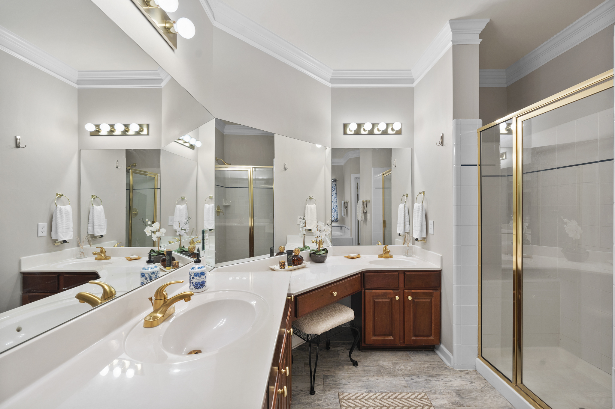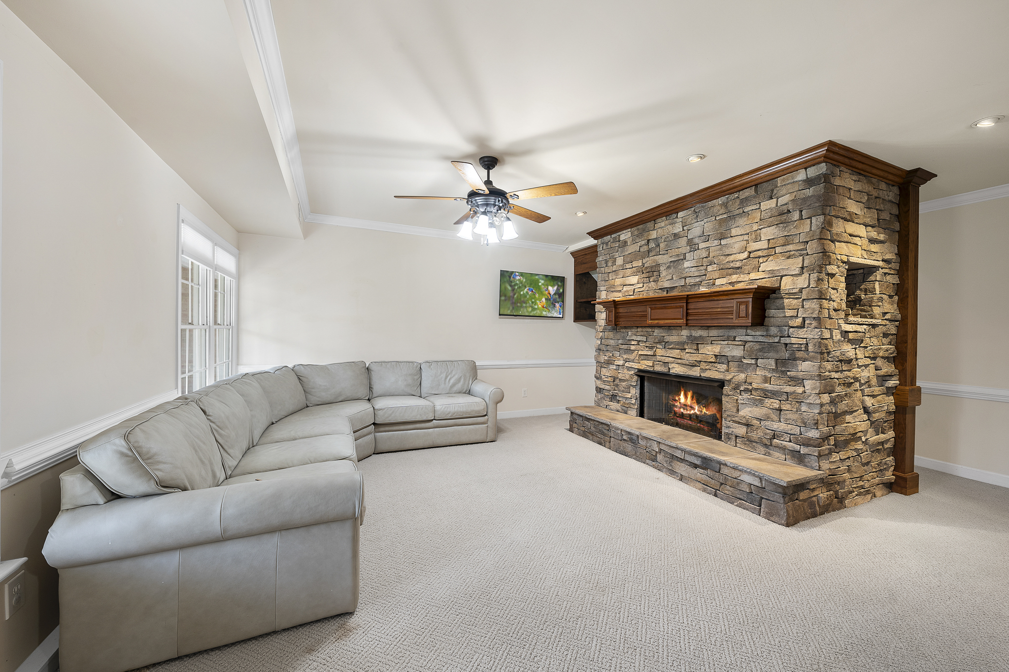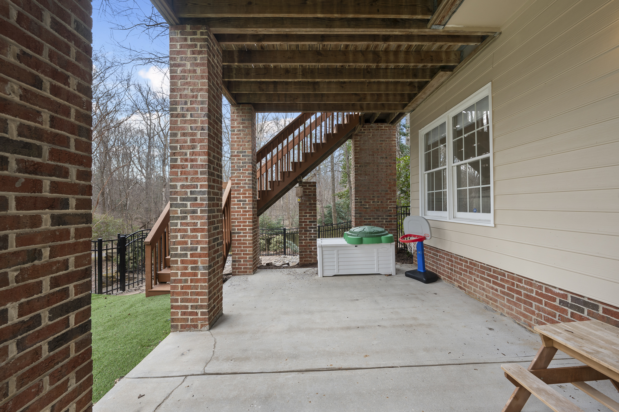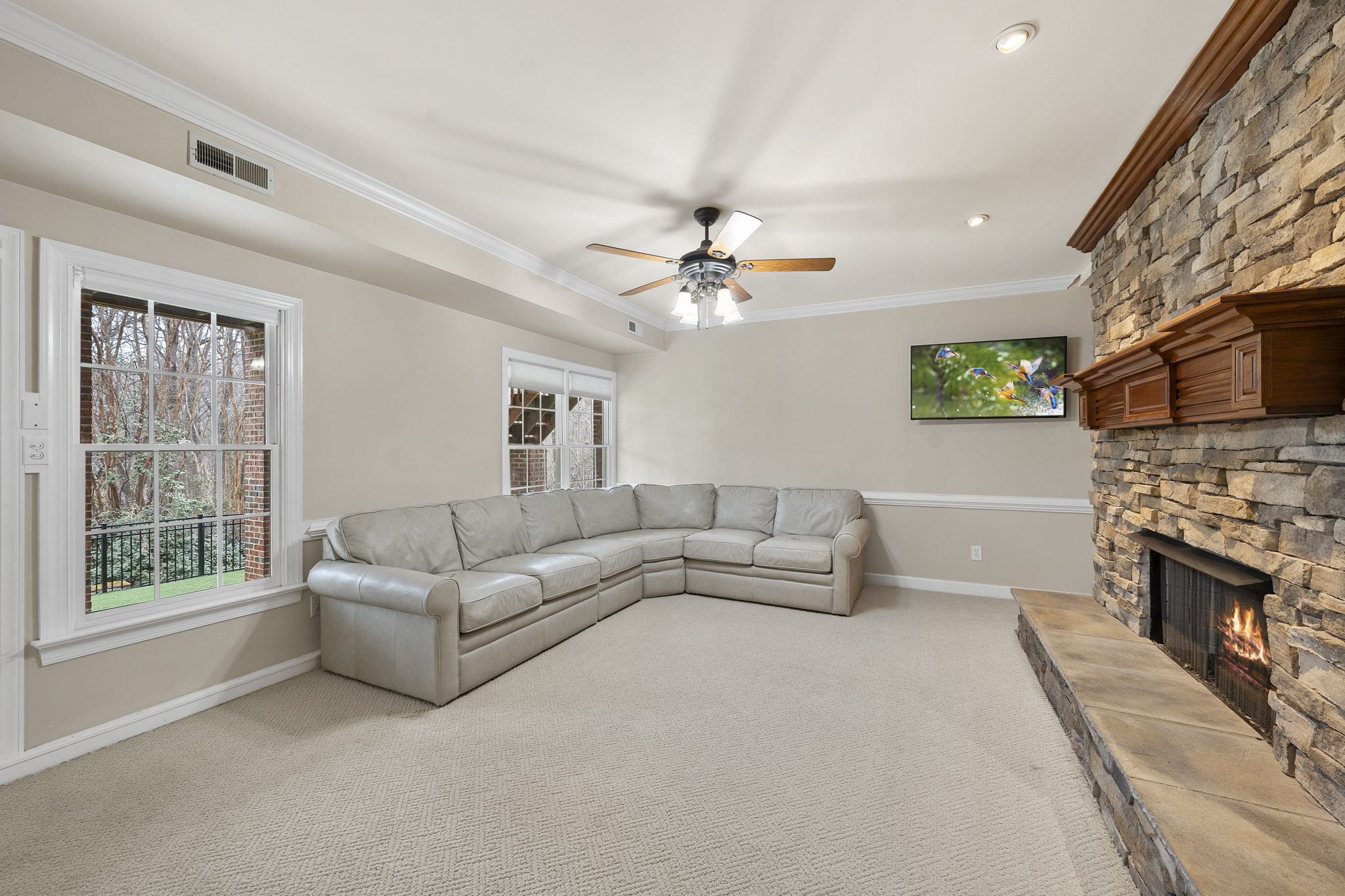 Discover this stunning Executive Brick Front Home with a First Floor Owner's Suite, perfectly situated on a quiet cul-de-sac in the heart of North Raleigh! Conveniently located near I-540, US-1, Durant Nature Park, Triangle Town Center, and minutes to Durant Elementary, Durant Middle, and Abbotts Creek! Step inside to find fresh paint throughout and an inviting open floorplan. The spacious family room with a cozy fireplace seamlessly connects to the gourmet kitchen, featuring new granite counters, freshly painted cabinets, stainless steel appliances, a pantry, and a charming breakfast nook. Work from home in the first floor study, and host gatherings in the formal dining room. The first floor primary suite boasts a tray ceiling, private ensuite with a walk-in shower, soaking tub, walk-in closet, and direct access to the outdoor living space! Head downstairs to the fully finished basement, designed for entertainment with a rec room, bar area, and a private guest suite. Relax in the bonus room with a stunning stone fireplace, perfect for cozy evenings. Upstairs, you'll find a versatile loft area, three additional bedrooms, and a shared bathroom. Enjoy outdoor living on the beautiful screened in porch, updated deck with new flooring, or the covered patio overlooking the backyard -- perfect for entertaining or unwinding in a peaceful setting! This home offers space, style, and functionality in a prime location! Don't miss it!
